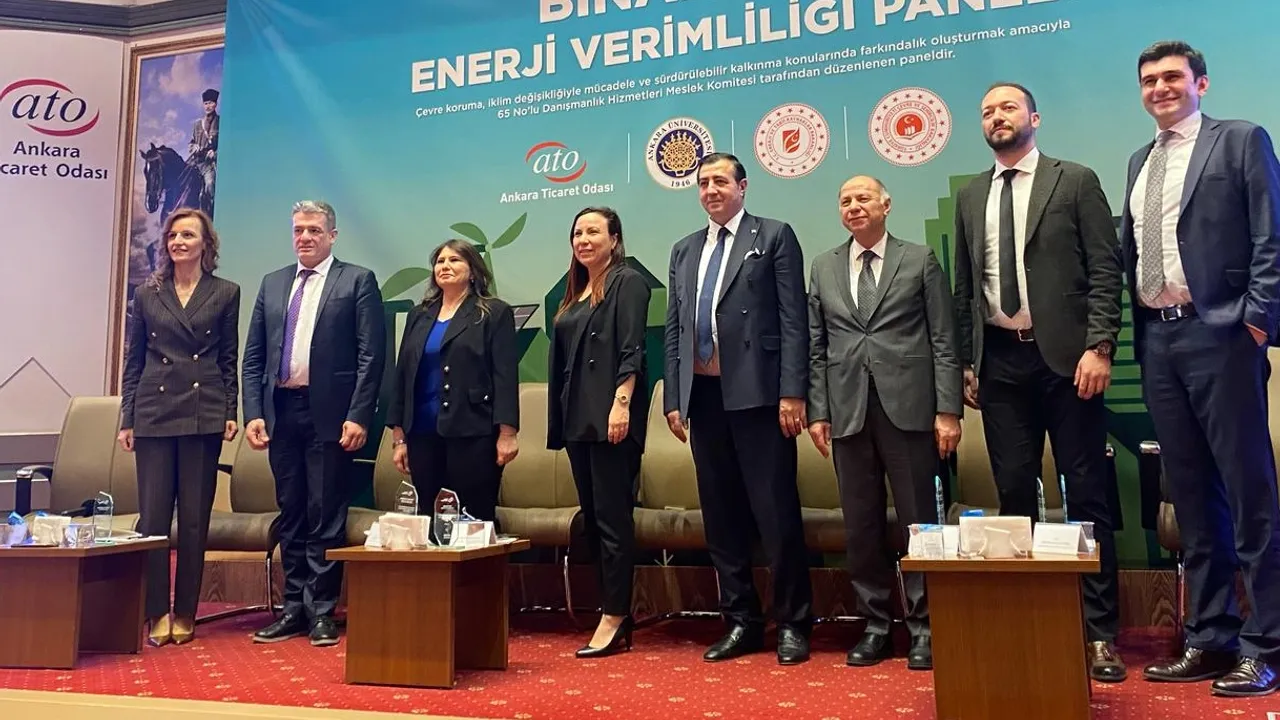 Ankara’da düzenlenen “Binalarda Enerji Verimliliği” panelinde, çevre koruma, sürdürülebilir kalkınma ve iklim değişikliğiyle mücadelede yapı sektörünün rolü masaya yatırıldı.Ali Fikret ER / ANKARA (İGFA) - Ankara’da Sürdürülebilir Gelecek Derneği tarafından ATO Meclis Salonu’nda düzenlenen “Binalarda Enerji Verimliliği” paneli, Çevre, Şehircilik ve İklim Değişikliği ile Enerji ve Tabii Kaynaklar Bakanlıkları temsilcilerini bir araya getirdi.