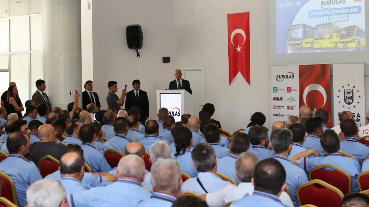 2025-2026 Eğitim-Öğretim Yılı’nın başlamasına kısa bir süre kala, Bursa Büyükşehir Belediyesi iştiraklerinden BURULAŞ bünyesinde görev yapan bin otobüs şoförüne yönelik “Otobüs Şoförleri Buluşması” ile etkili iletişim ve stres yönetimi eğitimi düzenlendi.BURSA (İGFA) - Bursa Büyükşehir Belediyesi, daha güvenli, erişilebilir ve konforlu bir ulaşım ağı oluşturma hedefiyle projelerini sürdürürken, bu kapsamda personel geliştirme programlarına da devam ediyor.Atatürk Kültür Merkezi Merinos Yerleşkesi’nde gerçekleştirilen programa, Bursa Büyükşehir Belediye Başkanı Mustafa Bozbey’in yanı sıra, Büyükşehir Belediyesi ve BURULAŞ yöneticileri, eğitmenler, sivil toplum kuruluşları temsilcileri ve otobüs şoförleri katıldı.