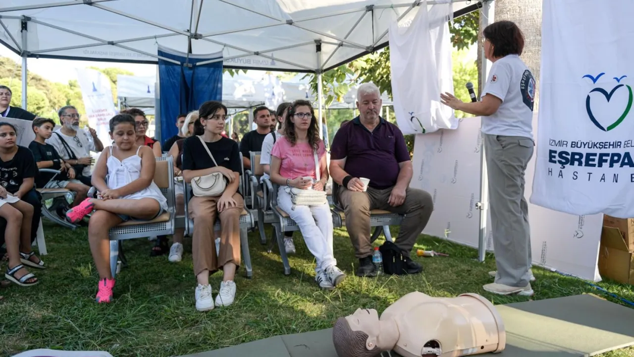 İzmir Büyükşehir Belediyesi, ani kalp durmalarında hayat kurtaracak otomatik elektroşok cihazlarını şehrin farklı noktalarına yerleştirmeye hazırlanıyor. Özel bir eğitim gerektirmeden vatandaşların kullanabileceği şekilde tasarlanan cihaz, hastane dışında meydana gelen ani kalp durması vakalarında sağ kalım oranını artırmaya yardımcı olacak.İZMİR (İGFA) - 94. İzmir Enternasyonal Fuarı’nda yerini alan Türkiye’nin ilk ve tek belediye hastanesi İzmir Büyükşehir Belediyesi Eşrefpaşa Hastanesi, fuar ziyaretçilerine ilkyardım eğitimleri verdi. Hastane dışında gerçekleşen ani kalp durması vakalarında hayati önem taşıyan kalp masajı uygulaması, 90 saniye gibi kısa bir sürede stant ziyaretçilerine uzman hekimler ve hemşireler tarafından uygulamalı olarak anlatıldı.