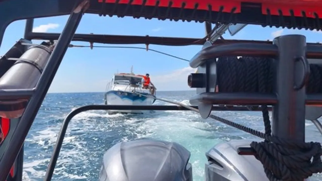 İçinde 5 kişi bulunan tekne, KEGM'ye bağlı TAHLİSİYE-2 hızlı tahlisiye botu tarafından hızla yedeklendi.